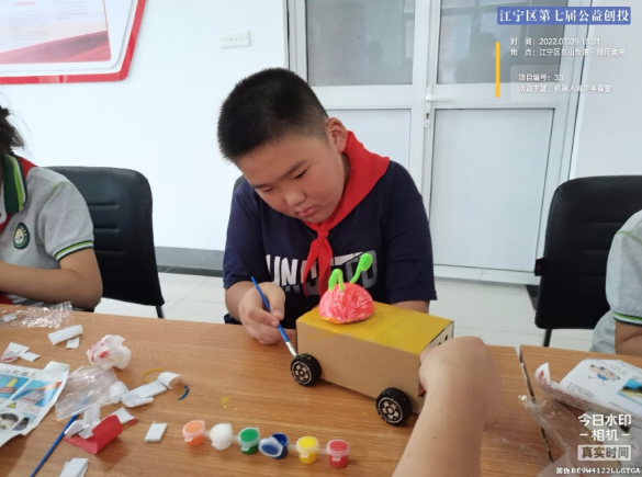 接下來老師給大家?guī)砹薉IY掃地機器人。制作過程中,每位小朋友們都非常專注,努力讓自己手中的作品更精致,看起來更完美,孩子們個個都像小發(fā)明家,認(rèn)真細(xì)致的模樣讓人不忍打斷。