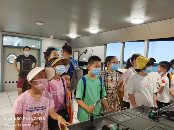 校方指導(dǎo)老師帶領(lǐng)孩子們參觀介紹了航海模擬器,大家認(rèn)真聆聽老師的介紹,并來(lái)到航海器面前,根據(jù)老師的指引,親自參與模擬演練。在操作過(guò)程中緊張又興奮,玩的不亦樂(lè)乎,體驗(yàn)到了航海的樂(lè)趣。
