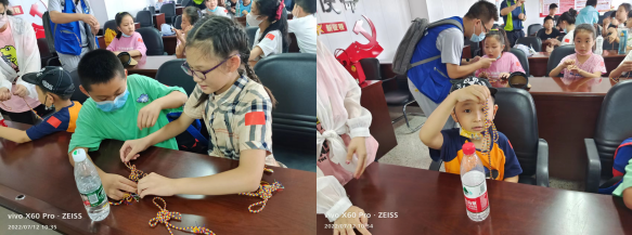 航海繩結(jié)是海員的必備技能,在船上繩結(jié)的運(yùn)用隨處可見(jiàn),比如系縛工具、綁連靠岸船只等都需要繩結(jié)。而且繩結(jié)種類多樣,八字結(jié)、平結(jié)、單套結(jié)、雙套結(jié)等,可滿足不同使用需求。孩子們親自動(dòng)手跟隨指導(dǎo)老師學(xué)習(xí)花樣繩結(jié)的各種打法,在互幫互助之下,大家都完成了打繩結(jié)的任務(wù)。