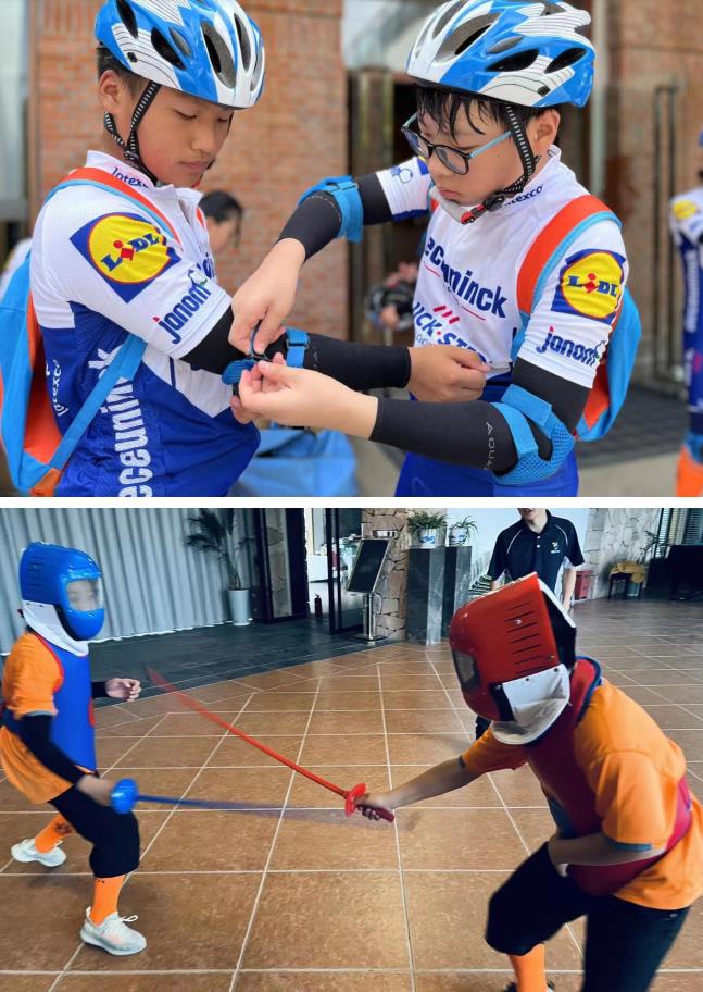 在豐富多彩的夏令營生活中,孩子們遵循營地規(guī)則,體驗了擊劍、環(huán)湖綠道騎行、非洲鼓、攀巖、射箭、漂流、橄欖球、旱地冰壺等新鮮有趣的課程,讓孩子們興奮不已。
