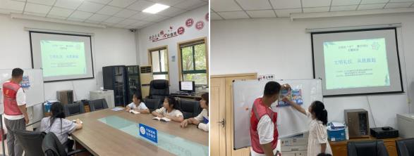 活動中,志愿者通過互動提問的形式,讓現(xiàn)場的小朋友們講述平時生活中遇到的文明與不文明行為及現(xiàn)象。同時,志愿者還通過案例的形式,讓小朋友們指出哪些行為是不文明的、不符合禮儀規(guī)范的,講解了在不同場合應該遵守的禮儀細節(jié)以及該如何做到講文明。志愿者還向青少年發(fā)出倡議,號召大家在日常生活學習中遵守文明禮儀、遵守社會秩序,不要讓文明禮儀只是單純的理念,而要讓它成為每個青少年的自覺言行。