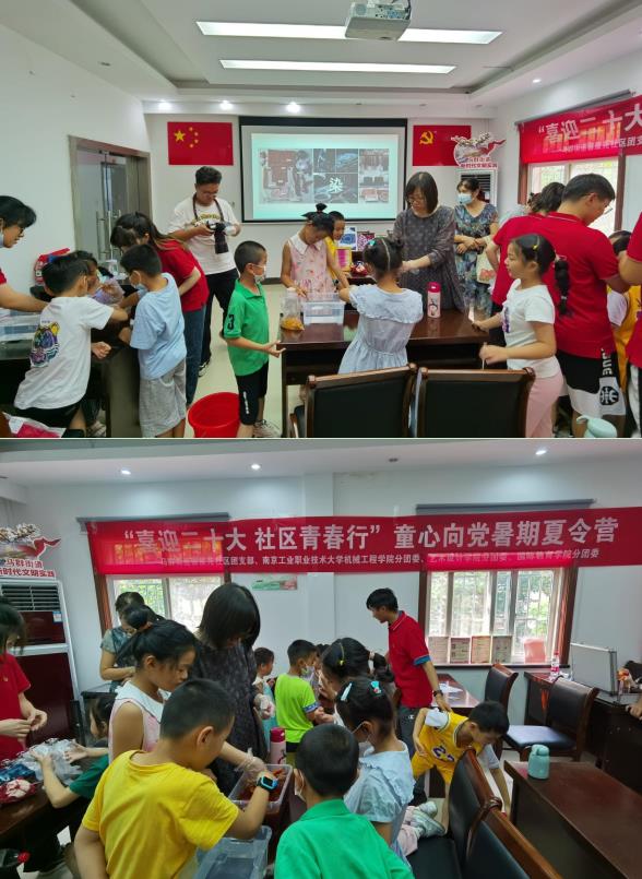 2022年7月19日下午,馨康苑社區(qū)新時代文明實踐站和馨康苑社區(qū)民政與南京工業(yè)職業(yè)技術(shù)大學(xué)藝術(shù)設(shè)計學(xué)院簽訂暑期社會實踐共建項目,該項目由南工大藝術(shù)學(xué)院大學(xué)生志愿者在馨康苑社區(qū)開展暑期夏令營活動。暑期夏令營活動的第一期活動是布染手工制作活動,讓青少年體驗傳統(tǒng)布染手藝,感受文化魅力,此次活動共吸引了轄區(qū)15戶親子家庭參與。