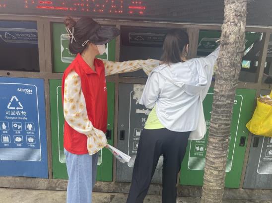 活動(dòng)開(kāi)始,社區(qū)工作人員定點(diǎn)在轄區(qū)垃圾分類(lèi)桶旁邊,為大家詳細(xì)介紹垃圾分類(lèi)后的多種用途,帶領(lǐng)居民了解環(huán)保屋垃圾如何正確分類(lèi),讓居民們更為直觀的了解垃圾分類(lèi)的知識(shí)和做好垃圾分類(lèi)工作對(duì)生態(tài)環(huán)境保護(hù)帶來(lái)的益處。
