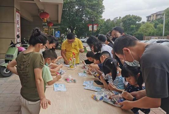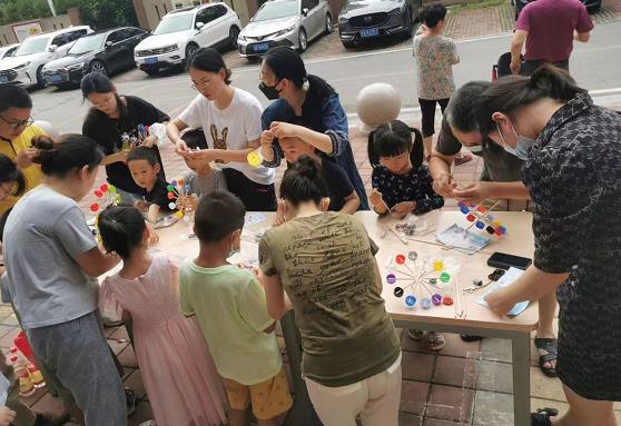 社區(qū)廣場(chǎng)的另一邊,志愿者通過展示拉線旋轉(zhuǎn)木馬、瓶蓋摩天輪、風(fēng)帆校車、盤子畫,讓社區(qū)居民觀察生活中產(chǎn)生的廢物如何二次利用,制作成美觀的裝飾品或者實(shí)用的科技產(chǎn)品。社區(qū)居民也積極體驗(yàn)環(huán)保科技作品,使之更加深刻地體會(huì)到環(huán)保的力量。完成環(huán)保打卡的居民,參加投圈圈小游戲贏取了獎(jiǎng)品。