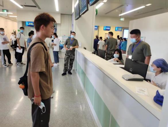 南京市江寧區(qū)湖熟街道湖熟社區(qū)2022年年夏季征兵體檢工作正式拉開序幕,當(dāng)日,湖熟社區(qū)民兵營(yíng)長(zhǎng)帶領(lǐng)轄區(qū)3名應(yīng)征人員前往南京市江寧醫(yī)院進(jìn)行征兵體檢。