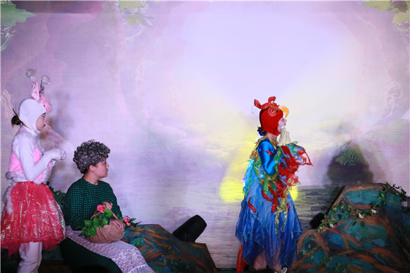 在開(kāi)場(chǎng)秀圓滿完成之后,本次文藝演出的重頭戲話劇《花神》正式上演,其講述了花仙子妞妞在現(xiàn)場(chǎng)小朋友的幫助下,帶領(lǐng)花世界的伙伴戰(zhàn)勝“壞蛋”大灰狼的故事?;ㄏ勺渔ゆぁ⑿←W鵡、小白兔、青蛙警長(zhǎng)、大灰狼……演出話劇中一個(gè)個(gè)立體豐滿的形象,塑造了一場(chǎng)斗智斗勇的正義保衛(wèi)戰(zhàn),也讓整場(chǎng)演出進(jìn)入高潮,引得現(xiàn)場(chǎng)的大朋友和小朋友們紛紛拍手叫好。“演出太好看了,最喜歡花仙子妞妞和青蛙警長(zhǎng)了,我以后也要做一個(gè)正義勇敢的人。”現(xiàn)場(chǎng)的小朋友說(shuō)道。