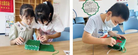 學(xué)習(xí)余暇時(shí),社工帶領(lǐng)小朋友們制作小行軍包,小朋友們穿針引線,認(rèn)真縫合。小小行軍包雖是模型,在制作中加強(qiáng)小朋友們對(duì)軍旅生活的向往。