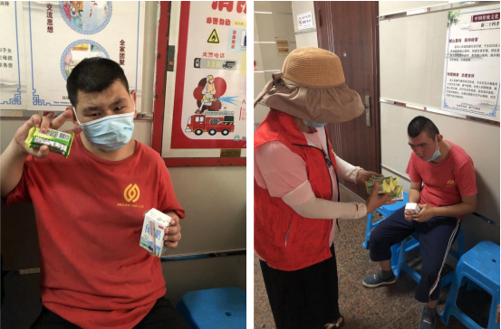 完成體檢后,老師第一時間給孩子們發(fā)放面包,牛奶,為孩子們補充新的能量。