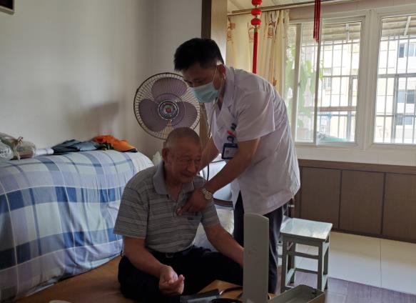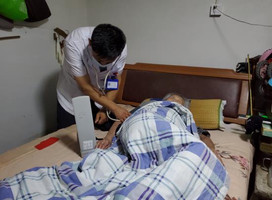醫(yī)護(hù)人員攜帶血壓計(jì)、聽診器等醫(yī)療設(shè)備,開展“敲門行動(dòng)”,入戶走訪目標(biāo)人群,為老人測(cè)量血壓、心率,詢問(wèn)殘疾老人的身體情況和既往病史,針對(duì)性地開展動(dòng)員工作。為尚未接種疫苗的老人進(jìn)行分析和研判,耐心講解接種疫苗的好處,引導(dǎo)老年群體樹立“早接種、早保護(hù)、誰(shuí)接種、誰(shuí)受益”的思想共識(shí)。并且對(duì)于肢體類殘疾不便于行、有接種意愿的殘疾人,安排醫(yī)務(wù)人員上門為其接種,努力實(shí)現(xiàn)六十歲及以上老人疫苗接種全覆蓋。