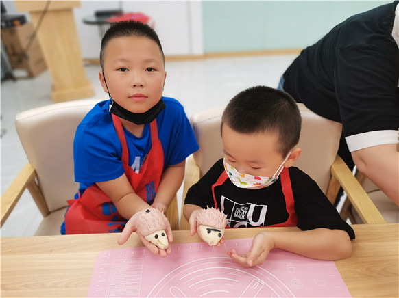 當(dāng)老師拿出準(zhǔn)備好的面團(tuán)的一剎那,孩子們歡呼雀躍,迫不及待的跟著老師學(xué)做起來(lái),制作過(guò)程每個(gè)孩子都專注打造自己手中的面團(tuán),從如何揉面,如何打造造型,如何用剪刀打造刺猬一身的刺,孩子們都在精心的雕琢著!不一會(huì)一個(gè)個(gè)生動(dòng)活潑的小刺猬呈現(xiàn)出來(lái)。在蒸制的同時(shí),老師又給大家分發(fā)面團(tuán)進(jìn)入diy環(huán)節(jié),孩子們?cè)诶蠋煹闹笇?dǎo)下腦洞打開,各種小動(dòng)物,魔術(shù)帽、花朵、甜甜圈,外星人等各種造型,不得不讓老師稱贊孩子們的創(chuàng)意。