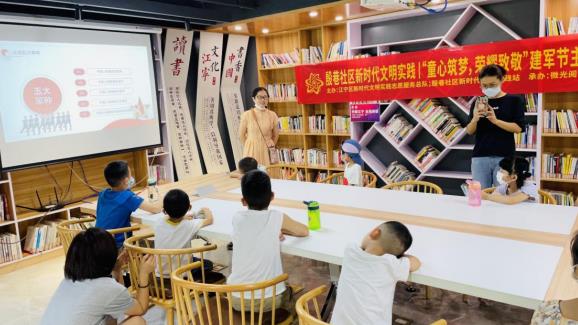 為了紀念人民解放軍建軍95周年,7月31日上午,南京市江寧區(qū)秣陵街道殷巷社區(qū)新時代文明實踐站聯(lián)合江寧區(qū)微光閱讀服務中心舉辦了“童心筑夢,榮耀致敬”八一建軍節(jié)主題活動。
