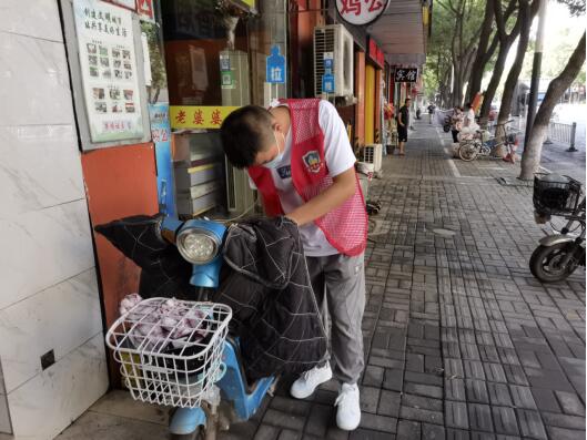 在早高峰期間,社區(qū)志愿者、工作人員穿著紅馬甲站在街頭、輕軌站下,將一些停放不規(guī)范的非機(jī)動車搬至停放劃線區(qū)域,引導(dǎo)上班的市民有序規(guī)范停車。烈日當(dāng)頭,雖已汗滴如雨,但社區(qū)的工作人員和志愿者們依然堅(jiān)守在崗位上,做好規(guī)范和引導(dǎo)的工作。