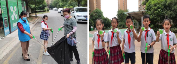 活動(dòng)伊始,社區(qū)工作者及網(wǎng)格員代表向?qū)W生和家長(zhǎng)們介紹分享了日常工作,包括信息的采集、社區(qū)治安和環(huán)境的巡查、通知發(fā)布和對(duì)特殊人群的關(guān)懷等。學(xué)生們還觀看了廚余垃圾收集、運(yùn)送的宣傳視頻。此外,學(xué)生們還走進(jìn)小區(qū)深入體驗(yàn),他們手握垃圾夾在大道上、小區(qū)草叢中,彎著腰,仔細(xì)尋找,撿拾起零碎的不易被人發(fā)現(xiàn)的小垃圾。在垃圾集中投放點(diǎn),學(xué)生們還采訪了管理員阿姨的工作,向她表示敬意。