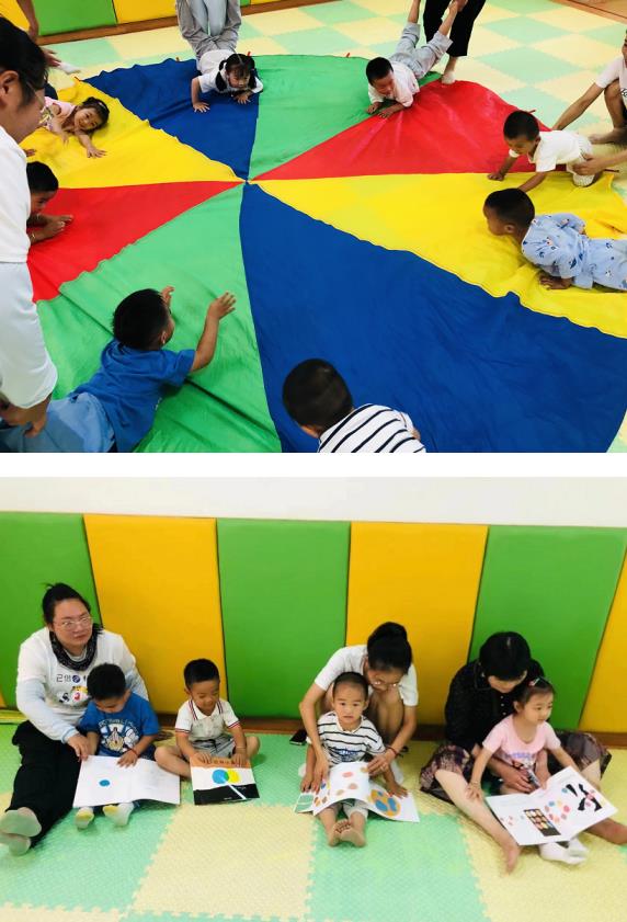 玩轉(zhuǎn)彩虹傘和閱讀繪本環(huán)節(jié),老師組織家長(zhǎng)一起參與進(jìn)來,帶領(lǐng)孩子們一起認(rèn)識(shí)顏色、閱讀繪本,通過游戲增加孩子認(rèn)識(shí)顏色的興趣,鍛煉幼兒聽故事的興趣,同時(shí)也大大促進(jìn)了親子之間的互動(dòng)樂趣,增進(jìn)了親子之間的感情。