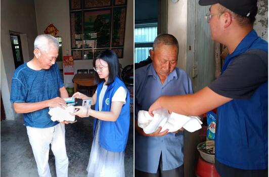 志愿者深入走訪獨(dú)居老人家中,與老人們親切交談,詢問了他們近期的生活情況、身體狀況,叮囑老人們?cè)谘籽紫娜兆⒁馍眢w健康,時(shí)刻防暑降溫減少外出,提醒他們注意用水用電安全,有問題及時(shí)向社區(qū)反映。同時(shí),志愿者為老人們送上了日用品、花露水等夏季防暑降溫物品,并幫助老人打掃房間,用實(shí)際行動(dòng)送上溫暖,傳遞村委會(huì)對(duì)他們的關(guān)心和關(guān)懷。