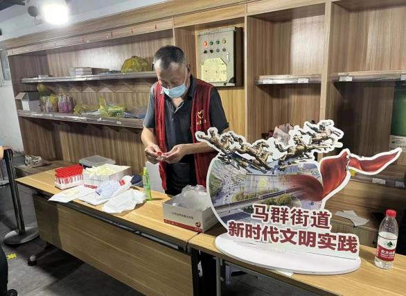 8月16日下午3點(diǎn),南京市棲霞區(qū)馬群街道蛇盤社區(qū)又開(kāi)始了新一輪全員核酸檢測(cè)工作。新時(shí)代文明實(shí)踐站的12名“銀發(fā)”志愿者們?cè)俅位氐搅怂麄兪煜さ闹驹阜?wù)崗位上來(lái)。有的在為采樣管貼二維碼,有的在引導(dǎo)前來(lái)排隊(duì)參檢的居民前往指定通道參加檢測(cè),還有的在隊(duì)伍中維持秩序、提醒參檢居民準(zhǔn)備好身份碼……在他們的支持和幫助下,核酸檢測(cè)現(xiàn)場(chǎng)井然有序。這已經(jīng)是他們參加的第30次全員核酸檢測(cè)志愿服務(wù),無(wú)論是寒冬還是酷暑,他們都堅(jiān)持在自己的志愿崗位上服務(wù)轄區(qū)居民。志愿者老吳說(shuō):“我們那代人的偶像就是‘雷鋒’。盡管我是‘白發(fā)’,但是我有一顆‘學(xué)雷鋒’的紅心。能做多少就做多少,讓我覺(jué)得自己還是一個(gè)對(duì)社會(huì)有用的人!”