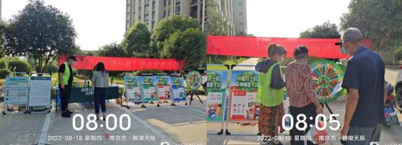 為進(jìn)一步貫徹落實(shí)《南京市生活垃圾管理?xiàng)l例》,培養(yǎng)居民生活垃圾定時(shí)定點(diǎn)分類投放習(xí)慣,同時(shí)聽取居民對(duì)垃圾分類的建議和意見。 8月18日上午,江寧街道垃圾分類辦公室聯(lián)合第三方南京中顥環(huán)境管理服務(wù)有限公司在碧湖天辰小區(qū)開展垃圾分類志愿宣傳活動(dòng)。