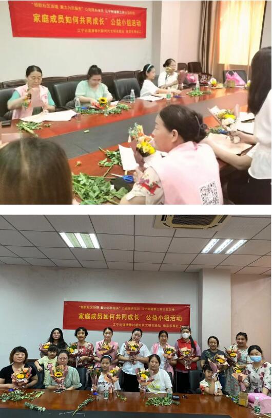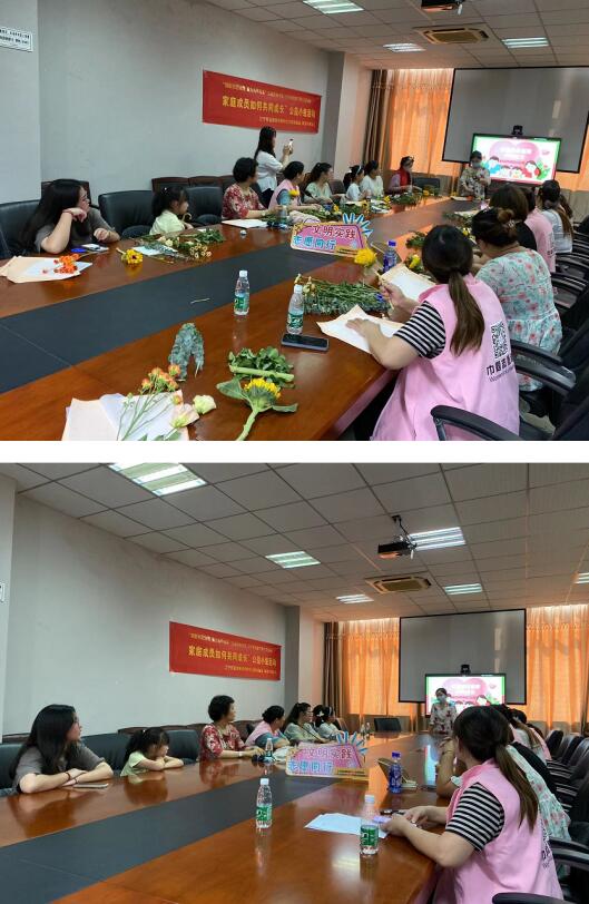 活動期間,老師從家庭教育中家長應(yīng)盡的責任展開講述,利用生動的語言和鮮活的案例,通過不同的方式帶領(lǐng)家長體驗孩子的內(nèi)心世界,為他們普及家庭教育先進理念,讓家長們意識到不僅是孩子們要面對未來的發(fā)展,成年人也需要不斷地完善自我,迎接來自未來的挑戰(zhàn)。如若家長停步不前不再成長,那么孩子也不可能會健康成長。隨后,老師與家長們展開互動,對于家長們在生活中遇到的關(guān)于成長的問題,老師也十分熱心地為其一一解惑,以幫助他們促進家庭溝通、優(yōu)化家庭關(guān)系?;顒幼詈?,南京樂享社會工作服務(wù)中心的老師帶領(lǐng)大家一起進行包花活動,大家各自發(fā)揮創(chuàng)意,其樂融融地在一起制作那一份屬于自己的花束。