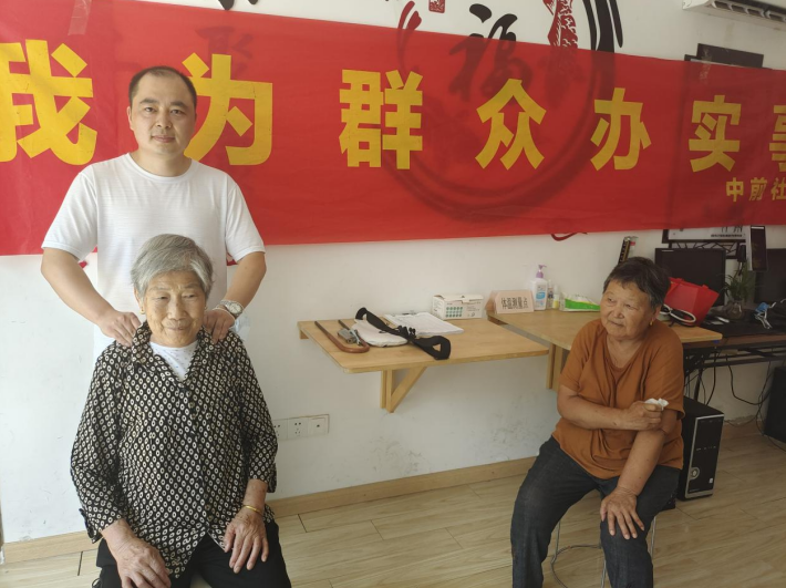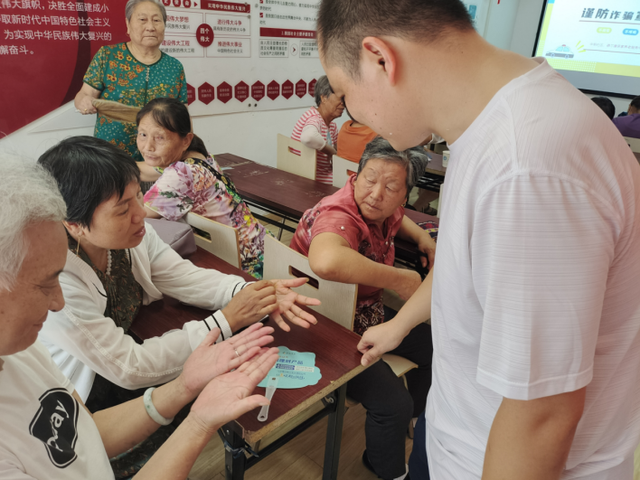 志愿者用通俗易懂的語言,并且一邊比劃、一邊示范指引老人如何找準(zhǔn)穴位進(jìn)行按壓,以達(dá)到日常保健的功效。講座結(jié)束后,許多居民咨詢的健康方面問題,都一一得到了志愿者的細(xì)心解答。