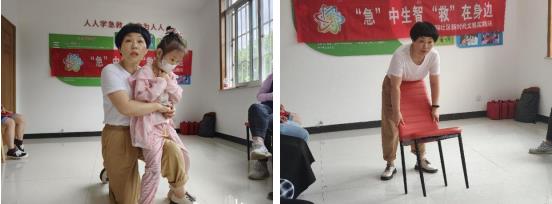 活動現(xiàn)場,張霞老師還詳細地介紹了窒息的分類、原因、表現(xiàn)及海姆立克急救方法,邀請參與者進行示范演練,帶領(lǐng)居民了解如何預防生活中燙傷、溺水等方面的急救知識。一名居民表示:“我家人之前也突然暈倒過,當時不知道怎么辦,今天來參加活動后,知道了應該做什么、怎么做,真的很實用!”