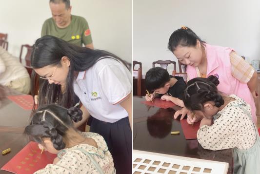 樂迎福描繪環(huán)節(jié),小朋友們在志愿者的耐心指導(dǎo)下,一筆一劃臨摹著作品。“老師,我臨摹好啦,這個“福”字好多筆畫呀”!“我要把掛在我家墻上,太好看了”!活動現(xiàn)場充滿了孩子們清脆、爽朗的笑聲。