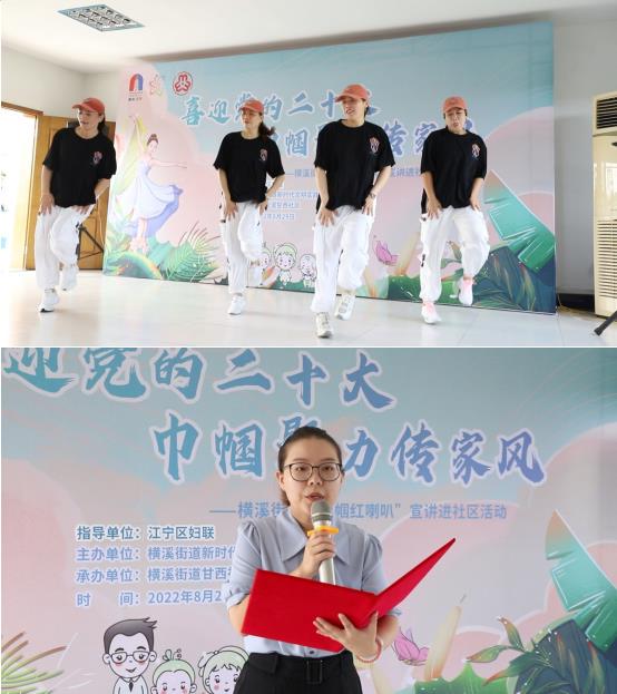 8月29日上午9:30,由南京市江寧區(qū)橫溪街道婦聯(lián)主辦、甘西社區(qū)承辦的“喜迎黨的二十大,巾幗聚力傳家風(fēng)”主題“巾幗紅喇叭”宣講進(jìn)社區(qū)活動(dòng)火熱開展,讓黨的“好聲音”飛入尋常百姓家,把黨的號(hào)召傳遞到千家萬戶。