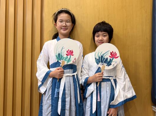 看著自己創(chuàng)作完成的作品,小朋友們直呼“成就感”滿滿。他們表示以前也經(jīng)常畫畫,可是在扇子上作畫還是比較少的,“穿上漢服在扇子上畫畫,有一種極具‘中國風(fēng)’的韻味。”