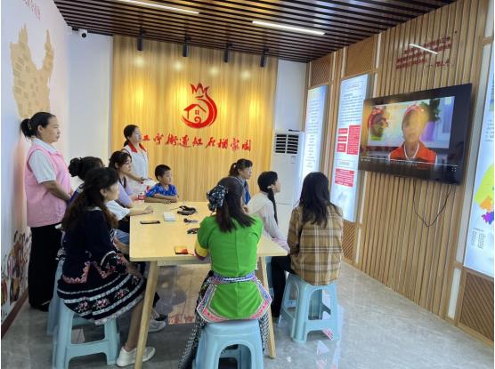 發(fā)簪制作環(huán)節(jié),大家依照視頻教程,在志愿者的指導(dǎo)下,將花片、花托、簪棍、銅絲和最重要的“紅石榴”進(jìn)行組合、纏繞,使用熱熔膠槍固定,制作出精致的石榴發(fā)簪。穿著各民族傳統(tǒng)服飾的居民們將石榴發(fā)簪裝點(diǎn)進(jìn)發(fā)間,讓傳統(tǒng)文化和各民族文化在這一刻得到了完美的融合。