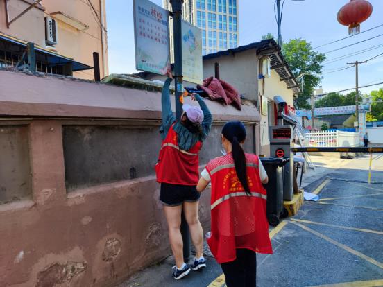“快看,我找到一處公益廣告卷邊,把膠帶給我,重新固定一下更美觀。”青年志愿者何歆鈺發(fā)現(xiàn)金寧新村小區(qū)2號(hào)門入口處燈桿上的道旗卷邊,現(xiàn)場(chǎng)進(jìn)行整改?;顒?dòng)中,青年志愿者們還對(duì)公益廣告宣傳欄進(jìn)行擦拭清潔,同時(shí),對(duì)過往居民進(jìn)行文明宣傳,增強(qiáng)他們愛護(hù)轄區(qū)公共設(shè)施的意識(shí),確保轄區(qū)文明創(chuàng)建宣傳陣地良好形象,讓居民在潛移默化中接受文明的洗禮。
