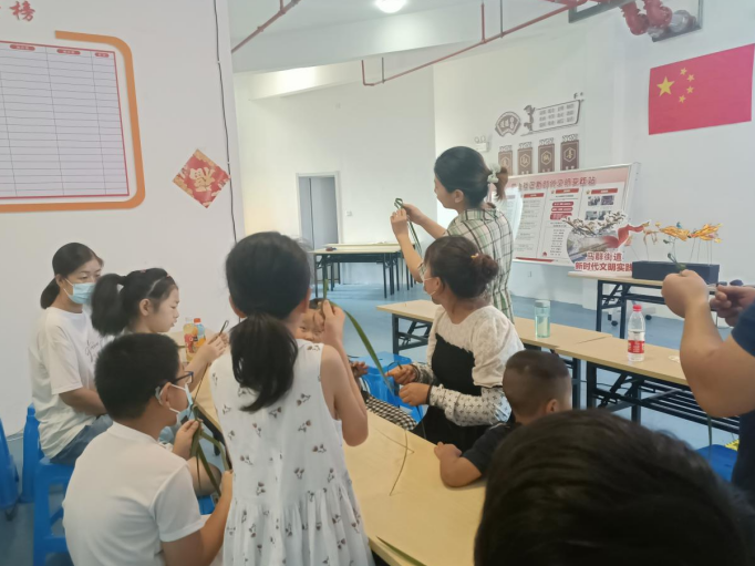 雖然草編工藝較為復(fù)雜,但是小朋友們熱情不減,在老師教導(dǎo)過(guò)程中認(rèn)真聽(tīng)講,積極發(fā)問(wèn),嘗試著動(dòng)手編織。在老師、家長(zhǎng)與社區(qū)志愿者的共同指導(dǎo)下,小朋友們都成功編織出了屬于自己的“小蚱螞”??粗∨笥褌兡樕下冻龅男θ?,非遺傳承人老師也感到十分滿足,他表示:“我們的傳統(tǒng)非遺文化只有越來(lái)越多的青少年喜歡,才能更好地傳承下去。”