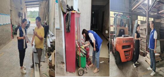 排查過(guò)程中,三位網(wǎng)格員各司其職。網(wǎng)格員方芳向企業(yè)負(fù)責(zé)人宣傳消防知識(shí),推薦企業(yè)關(guān)注“南京消防”公眾號(hào)。端木和麗檢查企業(yè)手推式滅火器等消防設(shè)備是否準(zhǔn)確、齊全、有效,并逐一檢查壓力,瓶體,軟管,噴嘴及相關(guān)設(shè)施,不錯(cuò)過(guò)一絲隱患。楊勇逐一檢查企業(yè)叉車(chē)操作員相關(guān)操作證書(shū),提醒企業(yè)使用叉車(chē)時(shí)一定要注意安全,做好防范,并認(rèn)真及時(shí)登記等等。