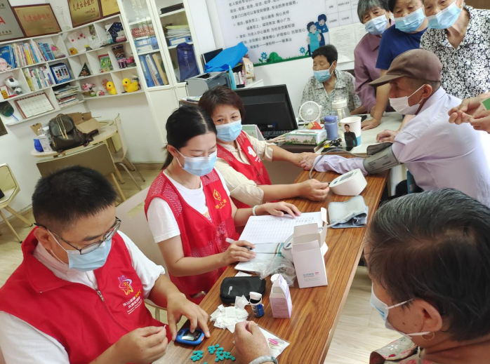 活動(dòng)現(xiàn)場(chǎng),轄區(qū)退休老教師們圍在醫(yī)務(wù)人員身邊,詢問健康常識(shí)。在志愿者的引導(dǎo)下,老教師們依次接受血壓和血糖的測(cè)量。社區(qū)醫(yī)務(wù)人員向血糖、血壓偏高的老教師提出指導(dǎo)建議,提醒他們平時(shí)多多加強(qiáng)鍛煉,注意健康飲食,發(fā)現(xiàn)頭暈不適等癥狀要及時(shí)到醫(yī)院就醫(yī)。同時(shí)耐心地為大家講解怎樣防止高血壓和高血糖的發(fā)作,并囑咐老教師們經(jīng)常自測(cè)血壓、血糖對(duì)控制血壓和降低心腦血管疾病很有幫助。