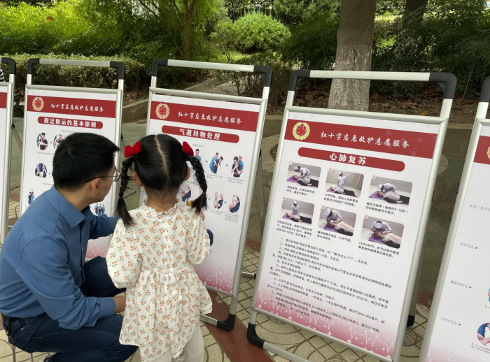 通過展板的形式向大家宣傳心肺復蘇的操作流程、氣道異物梗阻救治方法?;顒蝇F(xiàn)場家長們帶著孩子們認真學習,氣氛活躍,市民們表示以后如果遇到緊急情況,能更好的保護自己和能幫助別人。