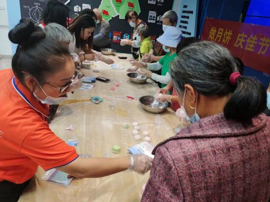 活動(dòng)現(xiàn)場(chǎng),工作人員生動(dòng)形象地為大家講述了中秋節(jié)的來(lái)歷及習(xí)俗,隨后拿起一塊月餅皮,舀起一勺餡料,一邊示范一邊為“五老”志愿者們講解冰皮月餅的制作過(guò)程。在工作人員的耐心指導(dǎo)下,大家一同揉冰皮、加餡料、包月餅、壓模具……忙得不亦樂(lè)乎。不一會(huì)兒,一枚枚精致的月餅在大家的手中誕生了,大家激動(dòng)地互相分享展示,在歡樂(lè)的氣氛中感受傳統(tǒng)民俗文化。活動(dòng)結(jié)束后,工作人員將這些造型美觀、香甜可口的精美月餅送到了小朋友手里,祝福他們中秋快樂(lè)、健康成長(zhǎng)。