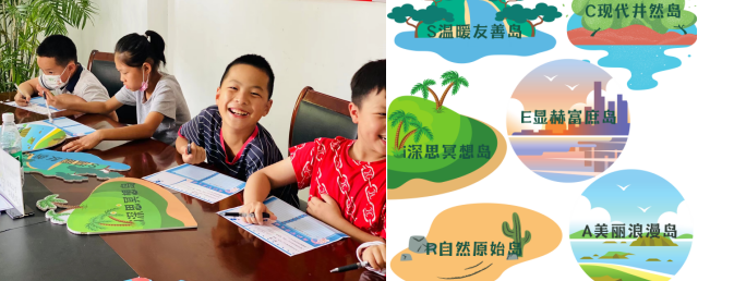 霍蘭德興趣島職業(yè)測試是通過選擇島嶼,探索自己的職業(yè)興趣,幫助思考職業(yè)方向。本環(huán)節(jié)中,社區(qū)志愿者通過“霍蘭德職業(yè)興趣小島”讓孩子們深入思考,了解小島類型,選擇自己想去與不想去的小島,感知自我特點,了解興趣方向。