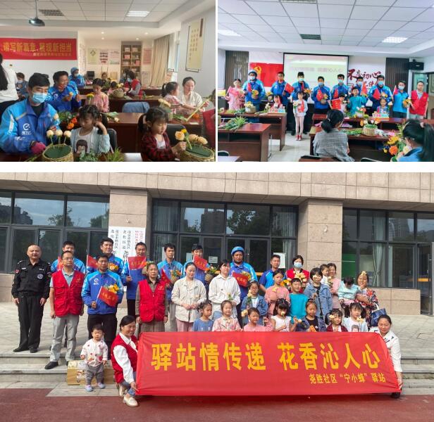 社區(qū)黨總支邀請外賣小哥及其子女開展“驛站情傳遞 花香沁人心”花藝制作活動,把對新業(yè)態(tài)新就業(yè)群體從業(yè)人員及其家庭的關(guān)愛落到實處,豐富新業(yè)態(tài)新就業(yè)群體家庭子女的文化生活,愿他們?nèi)缤r花一樣燦爛綻放。活動伊始,志愿者深入淺出地講解和演示了插花的基礎(chǔ)知識、工具使用、插花造型、色彩搭配以及如何剪切和用綠葉填充空白等技法。每組家庭都仔細(xì)聆聽,細(xì)致觀摩,認(rèn)認(rèn)真真得動手制作起來,在互相配合中找到了樂趣,在交流互動中增進(jìn)了親子關(guān)系,一束束精美的花藝作品逐漸完成了,活動現(xiàn)場氣氛十分融洽。勤勞的外賣小哥將 “文明衛(wèi)士”小紅旗插在電動車上,走街串巷入戶,把花香與文明傳送到城市的每一個角落。