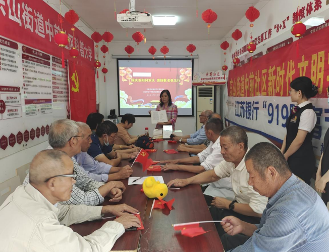 近日,南京市江寧區(qū)東山街道中前社區(qū)聯(lián)合德?tīng)柨稻蛹茵B(yǎng)老服務(wù)中心、江蘇銀行開(kāi)展“國(guó)慶重陽(yáng)同歡慶,愛(ài)國(guó)敬老我先行”主題活動(dòng),傳承紅色記憶,引導(dǎo)廣大黨員群眾共抒愛(ài)國(guó)情懷、共話祖國(guó)新貌,展示社區(qū)黨員群眾與時(shí)俱進(jìn)的時(shí)代風(fēng)采和昂揚(yáng)向上的精神風(fēng)貌。