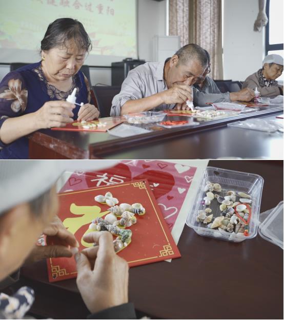 生活在幸福美滿的新時(shí)代,就是要把“福”掛在身邊。在社工的組織下,殘疾人給鎏金福加上貝殼,取其“福加貝,加倍福”的美好寓意。點(diǎn)綴上一個(gè)昌螺,祝福祖國(guó)昌盛不衰;點(diǎn)綴一個(gè)米螺,祝福祖國(guó)富足安康;再點(diǎn)一個(gè)織錦螺,祝福祖國(guó)繁花似錦;國(guó)與家是不可割舍的相連體,加上珍珠,愿家人好運(yùn)不斷;加上綠嶸螺,愿家庭基業(yè)長(zhǎng)青;再加仙女貝,愿生活幸福美滿……在充滿吉祥寓意的創(chuàng)作里,一片片加貝福逐漸映入眼簾,再系上中國(guó)結(jié),更襯節(jié)日的美好。在《祝福祖國(guó)》的背景樂里,大家手持加貝福,把祝福說(shuō)盡,把佳話說(shuō)滿,愿快樂幸福生活每一天。