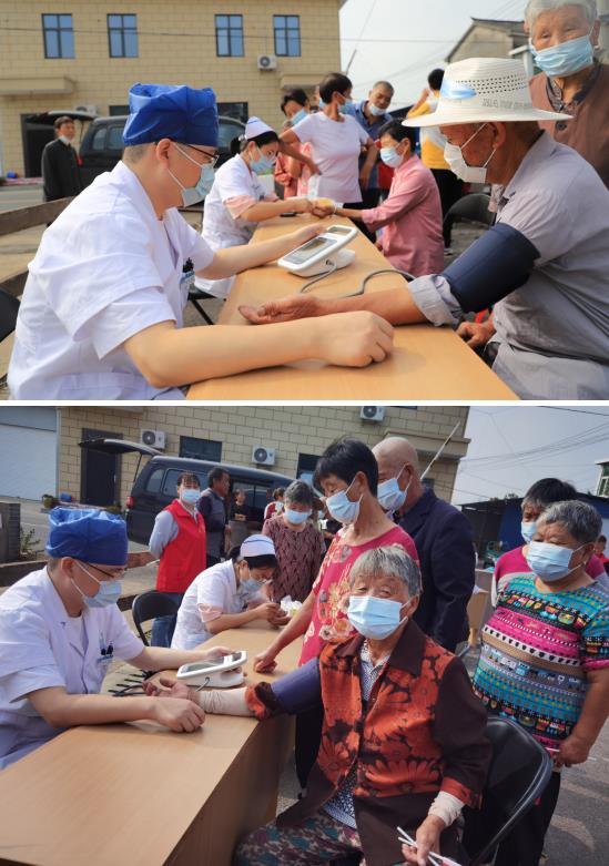 廣場(chǎng)的另一邊,健康義診在有序開(kāi)展著。老人們便來(lái)到趙家村廣場(chǎng)上進(jìn)行排隊(duì)問(wèn)診?;顒?dòng)現(xiàn)場(chǎng),土橋醫(yī)院的社區(qū)醫(yī)生們?yōu)榇蠹颐赓M(fèi)提供量血壓、測(cè)血糖、聽(tīng)診等服務(wù),很多老人把自身遇到的問(wèn)題一一告知,醫(yī)生也耐心地解答他們的問(wèn)題。