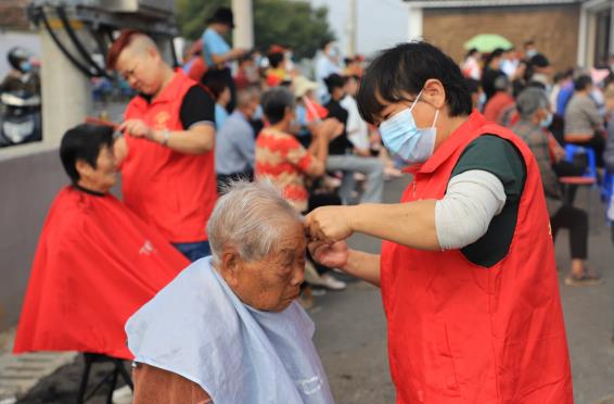 在理發(fā)義剪服務(wù)的點(diǎn)位,老人們有序排著隊(duì)伍,他們只需要告訴理發(fā)師自己想要的發(fā)型,便可享受到理發(fā)店的專(zhuān)屬理發(fā)服務(wù)。