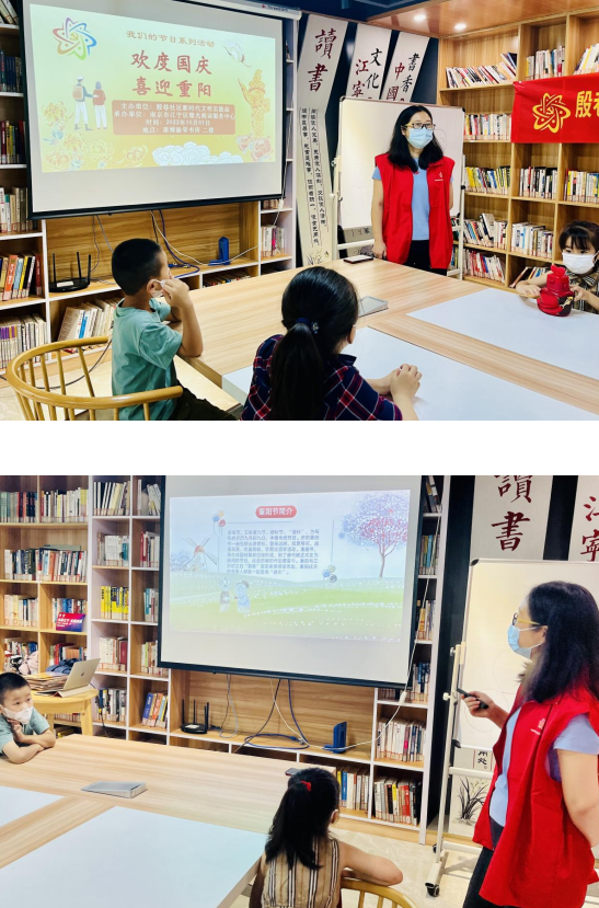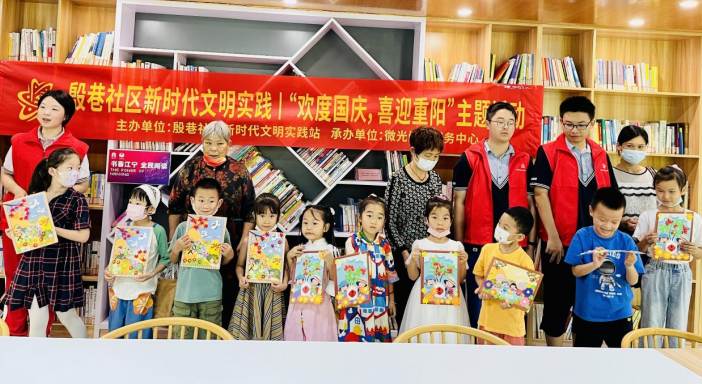 2022年10月長假,當(dāng)國慶遇上重陽節(jié),南京市江寧區(qū)秣陵街道殷巷社區(qū)新時代文明實(shí)踐站聯(lián)合微光閱讀服務(wù)中心,在康博睦鄰書房舉辦“歡度國慶,喜迎重陽”活動,讓孩子和爺爺奶奶們在學(xué)習(xí)、了解有關(guān)兩個節(jié)日的知識之余,既增加對節(jié)日的歡樂感受,又培養(yǎng)孩子們的愛國之心,傳承中華傳統(tǒng)美德!