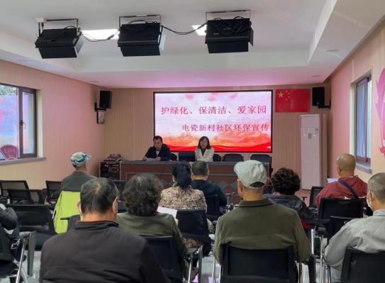 電瓷新村社區(qū)通過開展環(huán)保宣傳講座,倡導轄區(qū)居民對小區(qū)內新種植的花草進行養(yǎng)護,節(jié)約用水用電等措施來節(jié)能保護環(huán)境措施等。
