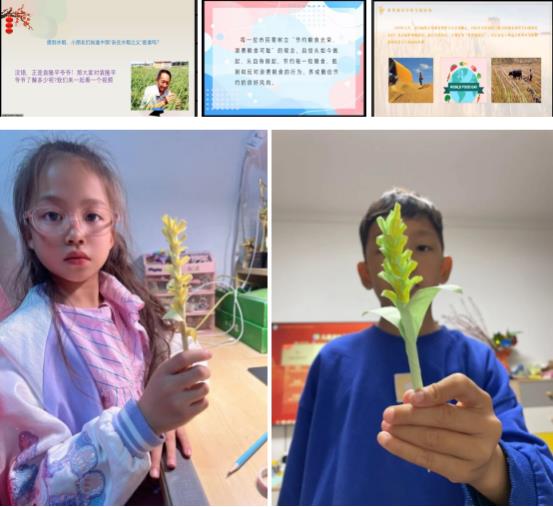 活動(dòng)伊始,志愿者呂雅楠詢問小朋友們知道哪些關(guān)于糧食的詩句,帶領(lǐng)大家做看圖猜糧食的小游戲,知識(shí)豐富的小朋友們都爭(zhēng)先恐后地?fù)尨?。緊接著,志愿者向小朋友介紹了我國的雜交水稻之父袁隆平,引入了世界糧食日的主題,并詳細(xì)世界糧食日的設(shè)立以及歷史。為了讓節(jié)約糧食的觀念更加深入人心,她還舉了一些世界性饑荒的例子,提問小朋友們應(yīng)該如何去解決這樣的問題。聽著大家精彩的回答,志愿者歸納成了兩個(gè)方面,一是需要官方的努力,二是需要我們每一個(gè)人的努力,她發(fā)出號(hào)召,要從自己做起,做一個(gè)節(jié)約糧食的人?;顒?dòng)最后,小朋友們大顯神通,在老師的帶領(lǐng)下,一步步制做出了屬于自己的小水稻。