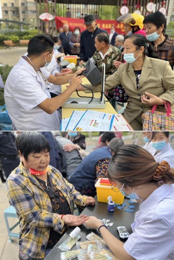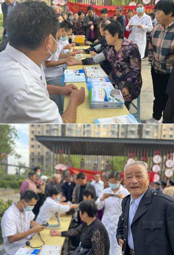 義診現場,醫(yī)護人員為老人測血糖及血壓,龍?zhí)缎l(wèi)生院孫院長認真詢問老人的身體狀況,并耐心地回答老人提出的問題,解答老人的健康困擾,并告知大家老年常見病相關防治知識,發(fā)放健康手冊,讓居民了解更多的健康知識,提倡全民閱讀,現場氣氛溫馨、融洽。