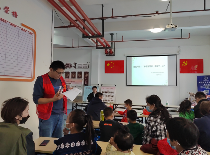 10月22日上午,向上社區(qū)新時代文明實踐站舉辦以“書香潤萬家 喜迎二十大”為主題的紅色經(jīng)典誦讀學(xué)習(xí)活動。