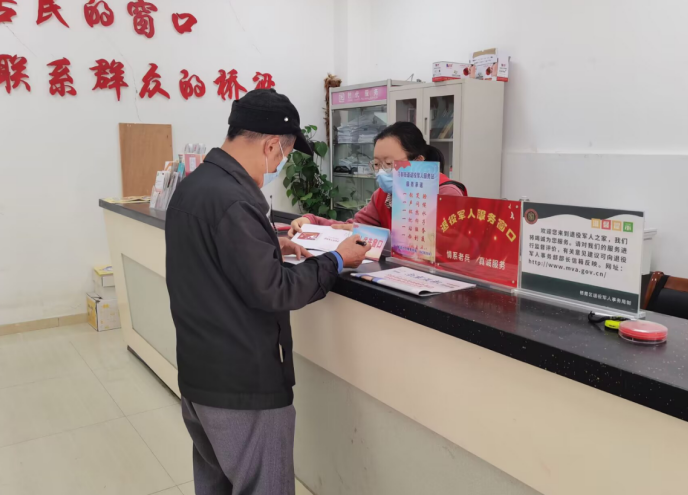為了做好退役軍人優(yōu)待證申領(lǐng)發(fā)放工作,馬群街道蛇盤社區(qū)退役軍人服務(wù)站與馬群街道蛇盤社區(qū)便民服務(wù)中心再次部門聯(lián)動(dòng),在便民服務(wù)中心設(shè)置退役軍人服務(wù)窗口,提供一窗式辦理、一站式服務(wù)。