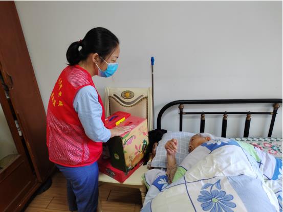 走訪過程中,社區(qū)便民服務中心工作者來到轄區(qū)98歲高齡老人陸福娣家中,送去面包、牛奶、水果等一些適合老年人的食品以及節(jié)日的誠摯祝福,祝愿老人節(jié)日快樂、健康長壽、幸福安康,讓她感受到黨和社會大家庭的溫暖。工作者們還仔細詢問著老人的日常生活起居、飲食以及身體健康等情況,并殷切叮囑老人的親屬,天氣轉涼,要及時為老人增添衣服。老人的家屬也表示,非常感謝黨和政府的關心、社區(qū)的關懷,一定會悉心照料老人,讓老人能夠安享晚年。