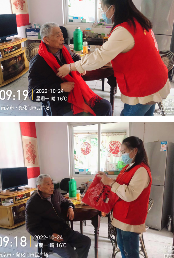 在南京市棲霞區(qū)堯化街道堯化社區(qū)楓林小區(qū)劉爺爺家里,因?yàn)樯鐓^(qū)工作人員的到來(lái)而熱鬧溫馨。劉爺爺對(duì)社工已經(jīng)相當(dāng)熟悉,因?yàn)槊吭露加猩绻ぜ爸驹刚邅?lái)看望,并幫助免費(fèi)量血壓,提供健康咨詢。