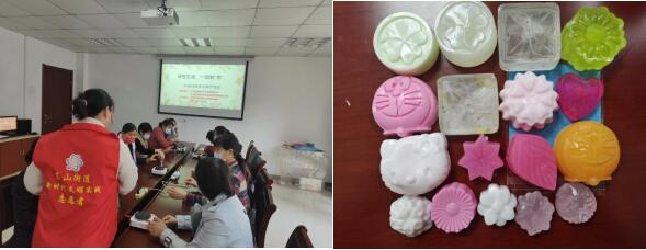 現(xiàn)場,志愿者詳細(xì)地為大家講解了香皂的制作方法、制作原料與制作工具等相關(guān)內(nèi)容,并將制作材料按照溶解、調(diào)色、攪拌、注模、風(fēng)干、脫模等步驟一一向大家演示,現(xiàn)場示范香皂的制作過程。隨后,在志愿者的幫助和指導(dǎo)下,居民們根據(jù)自己的喜好,分別選擇了各種不同形狀的模具和不同功效、味道的精油進(jìn)行了手工創(chuàng)作。制作過程中,大家相互交流,互相幫助,現(xiàn)場歡聲笑語不斷,不一會兒,一塊塊造型可愛、清新怡人的香皂相繼出模。大家欣喜地相互分享展示,并表示這樣的活動十分有趣,希望接下來社區(qū)能夠多多舉辦此類活動。