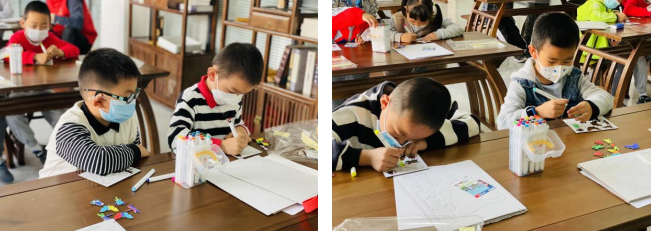 這是一所奇趣的花園,里邊的昆蟲(chóng)猶如大千世界。“昆蟲(chóng)迷你博物館”立體貼畫(huà)需要孩子們充分發(fā)揮自己的想象力和創(chuàng)造力,來(lái)進(jìn)行美的創(chuàng)作。要思考昆蟲(chóng)的顏色、生活習(xí)性,搭建框架、為昆蟲(chóng)涂色和選定位置,最終,郁郁蔥蔥的綠植和色彩鮮艷的昆蟲(chóng)變成了精美的迷你博物館。